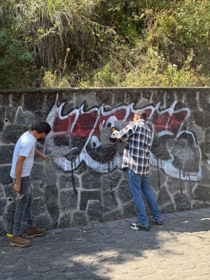 El Gobierno de Pátzcuaro realizó trabajos de limpieza y retiro de grafiti en muros ubicados en la zona del Estribo Grande, con el objetivo de recuperar la imagen urbana y conservar este importante espacio natural.