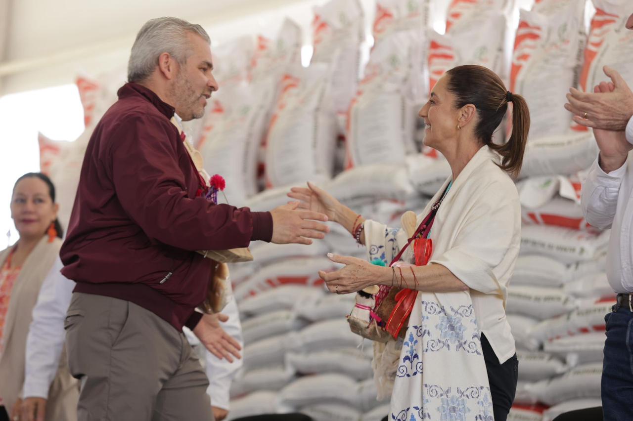 Salvador Escalante.- Claudia Sheinbaum Pardo ha demostrado en estos días ser una presidenta patriota que ama y defiende a su pueblo, señaló el gobernador Alfredo Ramírez Bedolla, en el acto masivo en donde se explicaron los programas Nacional de Fertilizantes y Cosechando Soberanía, por parte de la propia mandataria federal.