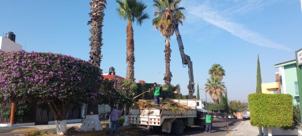 En cuanto a la poda de árboles de ornato, se intervino en la Colonia Carlos Salazar, mientras que la poda de palmeras se realizó en la Colonia Jardines del Toreo. Adicionalmente, se llevó a cabo el retiro de una palmera en la salida a Salamanca, así como el retiro de poda y residuos vegetales en la Colonia Fuentes de Morelia y en la Avenida Pedregal.