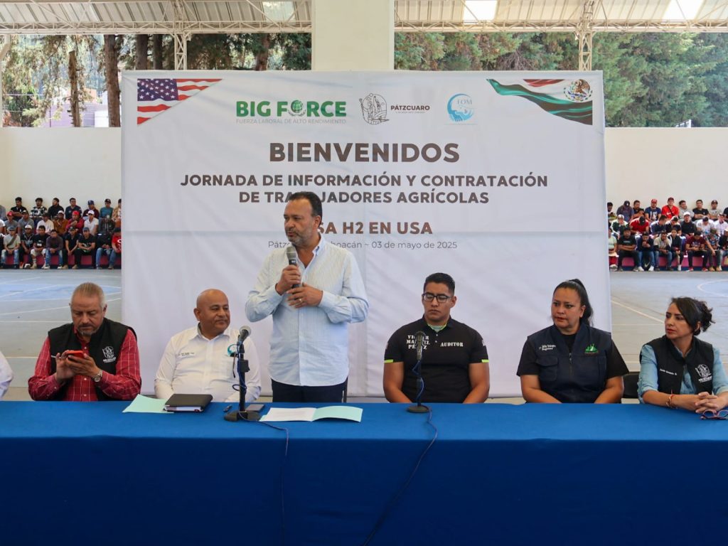 En el evento también se formalizó la firma de un convenio de colaboración entre el Ayuntamiento de Pátzcuaro, la empresa Big Force y FOM, que permitirá dar seguimiento cercano a quienes sean seleccionados para integrarse al programa laboral en Estados Unidos.
