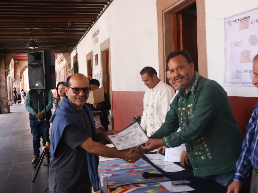 Durante el evento se entregaron reconocimientos a maestras y maestros artesanos de distintas disciplinas, destacando la participación de lacadores, bordadoras y representantes de comunidades. Arreola destacó que el sector artesanal es pieza clave en la aspiración de Pátzcuaro para ser reconocido como Patrimonio Mundial de la Humanidad.
