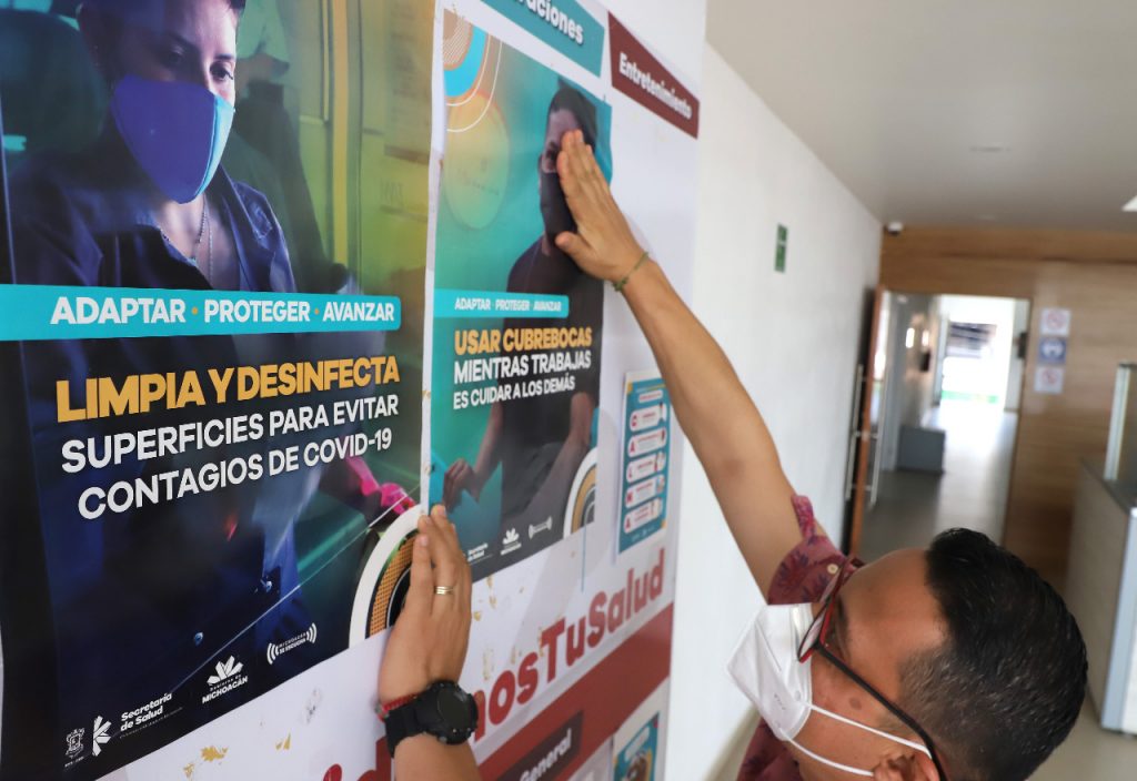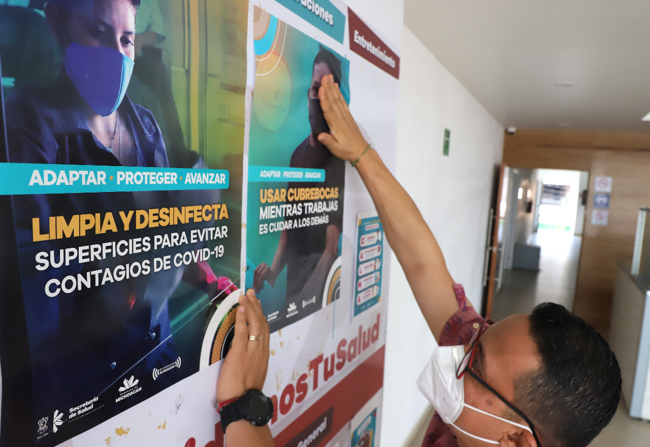 En aras de concientizar, informar y orientar a la población sobre COVID-19, la Secretaría de Salud de Michoacán (SSM), realiza acciones de prevención a través de la repartición de carteles, volantes y lonas con medidas básicas de higiene para la contención del virus.